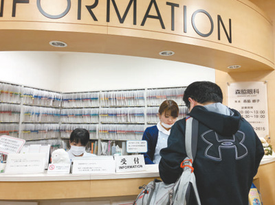 日本東京某私立醫(yī)院內(nèi),工作人員正在給病人登記。記者 劉軍國(guó) 攝