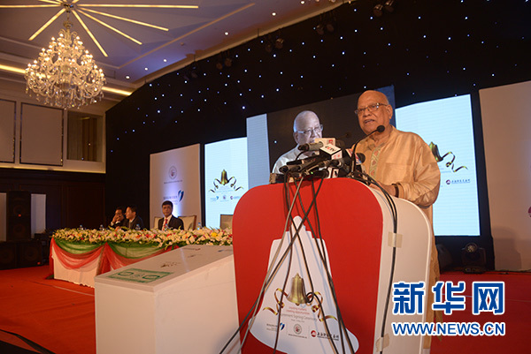 5月14日,在孟加拉國首都達卡,孟加拉國財政部長穆希特在協(xié)議簽署儀式上講話。新華社發(fā)