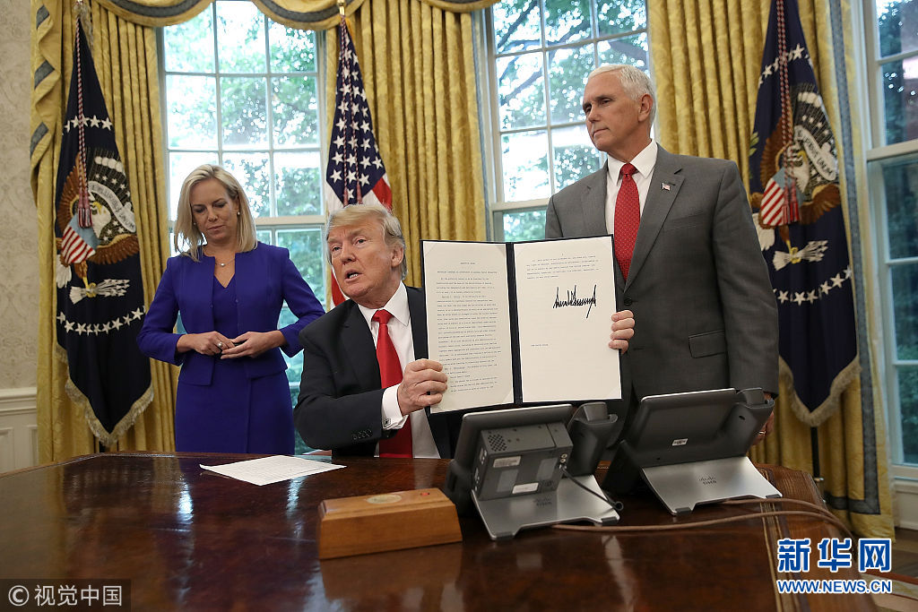 6月20日,美國華盛頓,美國總統(tǒng)特朗普撤回了此前為打擊非法移民,進而導致大批兒童與父母強制分離的“零容忍”政策。(圖片來源:視覺中國)
