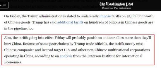 用《華盛頓郵報(bào)》自己的話說就是:“因?yàn)樘乩势漳切┵Q(mào)易官員的失策,這些制裁性關(guān)稅并不會(huì)打擊到多少中國(guó)企業(yè),反而把美國(guó)等其他非中國(guó)的跨國(guó)公司的在華分部當(dāng)作了打擊對(duì)象”。