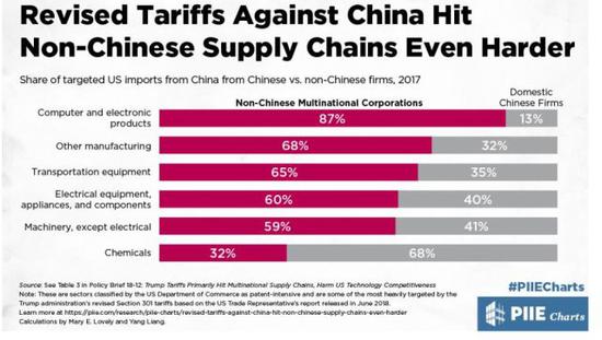 《華盛頓郵報(bào)》還介紹說,得出這一結(jié)論的是美國(guó)知名智庫(kù)“彼得森國(guó)際經(jīng)濟(jì)研究所”。耿直哥也查閱了該研究所的相關(guān)報(bào)告,發(fā)現(xiàn)其研究人員通過詳細(xì)的分析發(fā)現(xiàn),特朗普政府對(duì)中國(guó)發(fā)動(dòng)的貿(mào)易戰(zhàn)會(huì)主要傷及的確實(shí)不是中國(guó)自己的企業(yè),而是美國(guó)以及美國(guó)盟友們所獨(dú)資持有的中國(guó)分公司。