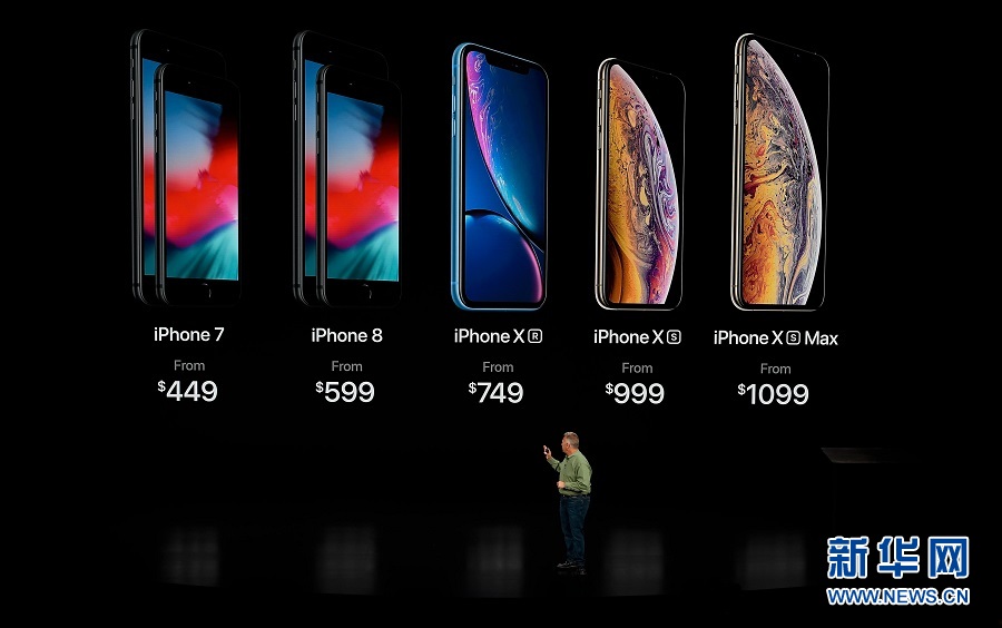 9月12日,在美國加利福尼亞州丘珀蒂諾市舉行的蘋果新品發(fā)布會上,蘋果公司全球市場營銷高級副總裁菲利普·席勒介紹蘋果系列手機的售價。美國蘋果公司12日在加州丘珀蒂諾市舉行新品發(fā)布會,推出3款智能手機和第四代蘋果手表等產(chǎn)品。其中,手機雙卡雙待功能和手表健康監(jiān)測應用廣受關(guān)注。 新華社發(fā)