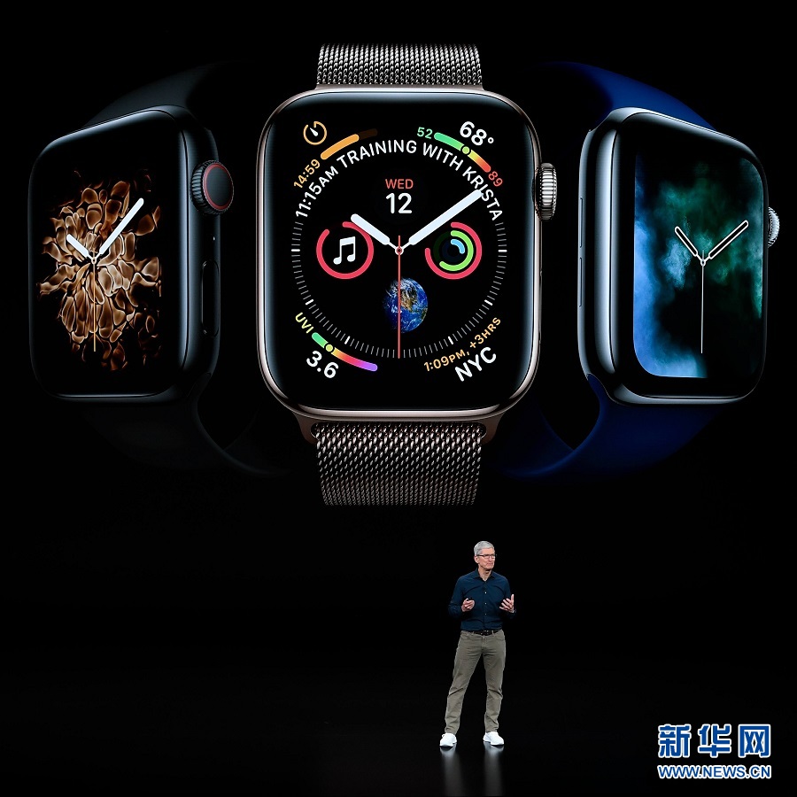 9月12日,在美國加利福尼亞州丘珀蒂諾市舉行的蘋果新品發(fā)布會上,蘋果公司首席執(zhí)行官蒂姆·庫克介紹新推出的第四代蘋果手表。美國蘋果公司12日在加州丘珀蒂諾市舉行新品發(fā)布會,推出3款智能手機和第四代蘋果手表等產(chǎn)品。其中,手機雙卡雙待功能和手表健康監(jiān)測應用廣受關(guān)注。 新華社發(fā)
