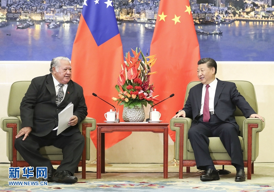 9月18日,國家主席習(xí)近平在北京人民大會堂會見來華出席夏季達沃斯論壇的薩摩亞總理圖伊拉埃帕。 新華社記者丁林攝