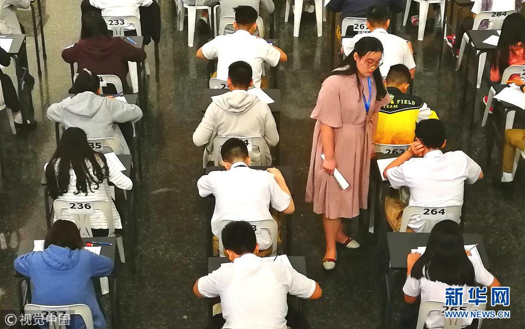當(dāng)?shù)貢r(shí)間2018年9月29日,來自菲律賓首都大馬尼拉地區(qū)十所學(xué)校的1304名考生以及社會(huì)考生25名,在菲律賓光啟學(xué)校參加中國漢辦的漢語水平(HSK)考試,分別報(bào)考HSK二至六級考試。(圖片來源:視覺中國)