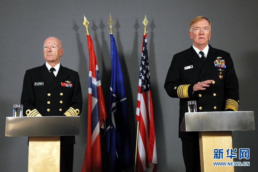 10月25日,在挪威首都奧斯陸,挪威國(guó)防司令、海軍上將哈康·布倫-漢森(左)和美國(guó)海軍上將詹姆斯·福戈介紹軍演情況。 當(dāng)日,北大西洋公約組織(北約)開始在挪威及其周邊地區(qū)舉行為期兩周的“三叉戟接點(diǎn)2018”聯(lián)合軍事演習(xí)。這是北約自冷戰(zhàn)結(jié)束以來規(guī)模最大的一次聯(lián)合軍演。 新華社記者 梁有昶 攝