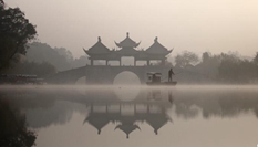 初冬晨霧籠罩揚州瘦西湖