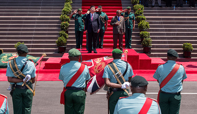 11月16日,國(guó)家主席習(xí)近平在莫爾茲比港會(huì)見巴布亞新幾內(nèi)亞總督達(dá)達(dá)埃。會(huì)見開始前,達(dá)達(dá)埃在議會(huì)大廈前廣場(chǎng)為習(xí)近平舉行隆重歡迎儀式。新華社記者 鞠鵬 攝