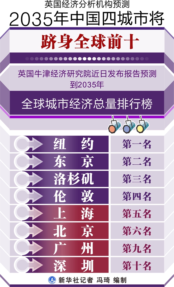 英國經(jīng)濟分析機構預測2035年中國四城市將躋身全球前十 新華社記者 馮琦 編制