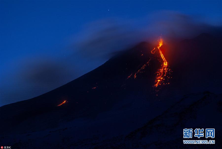 意大利埃特納火山噴發(fā) 熔巖噴射猶如煙火綻放