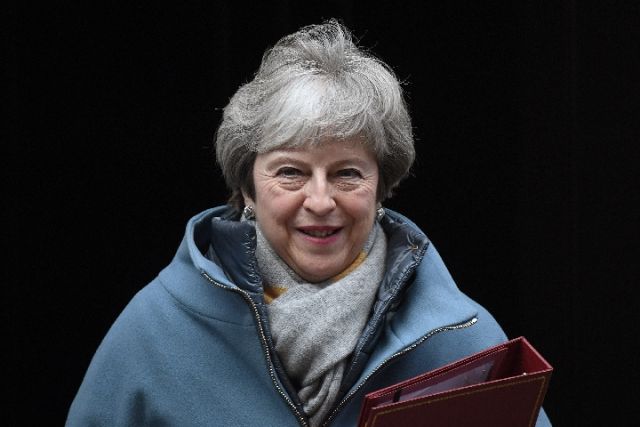 1月21日,在英國(guó)倫敦,英國(guó)首相特雷莎·梅離開唐寧街10號(hào)前往議會(huì)下院。(新華社發(fā),蒂姆·愛爾蘭攝)