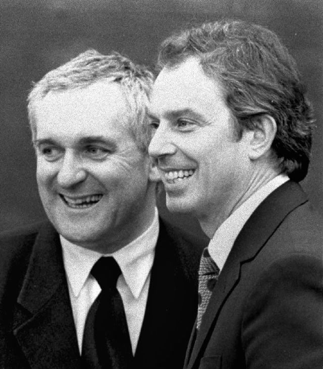 當(dāng)時(shí),代表愛爾蘭和英國(guó)政府簽署協(xié)議的分別是時(shí)年47歲的愛爾蘭總理伯蒂·埃亨和45歲的英國(guó)首相托尼·布萊爾。