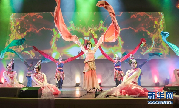 2月16日,在愛(ài)爾蘭首都都柏林,來(lái)自中國(guó)湖北省歌劇舞劇院的演員在春節(jié)聯(lián)歡晚會(huì)上表演舞蹈。新華社發(fā)