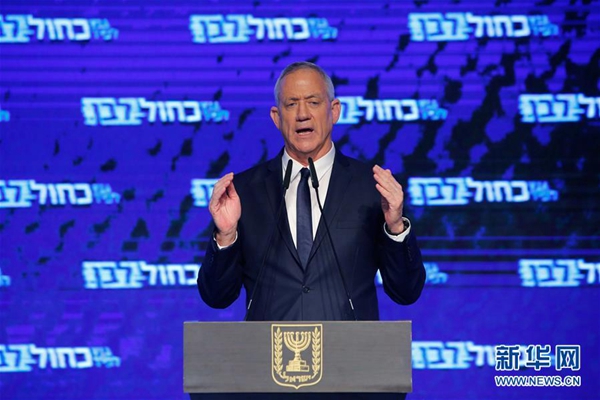 以色列藍白黨領(lǐng)導人甘茨4月10日晚發(fā)表講話,承認在議會選舉中失敗。這是4月9日,在以色列特拉維夫,以色列藍白黨領(lǐng)導人甘茨對支持者講話。新華社發(fā)(吉爾·科恩·馬根 攝)