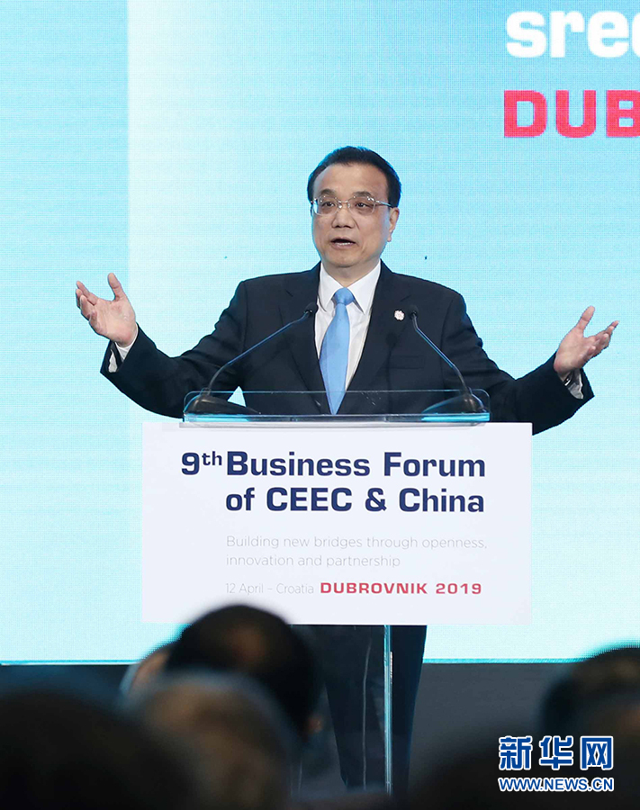 當(dāng)?shù)貢r(shí)間4月12日上午,國務(wù)院總理李克強(qiáng)在杜布羅夫尼克與中東歐16國領(lǐng)導(dǎo)人共同出席第九屆中國-中東歐國家經(jīng)貿(mào)論壇開幕式并致辭。 新華社記者 劉衛(wèi)兵 攝