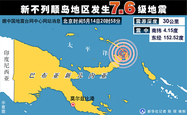 圖表:新不列顛島地區(qū)發(fā)生7.6級(jí)地震 新華社記者 陳琛 編制