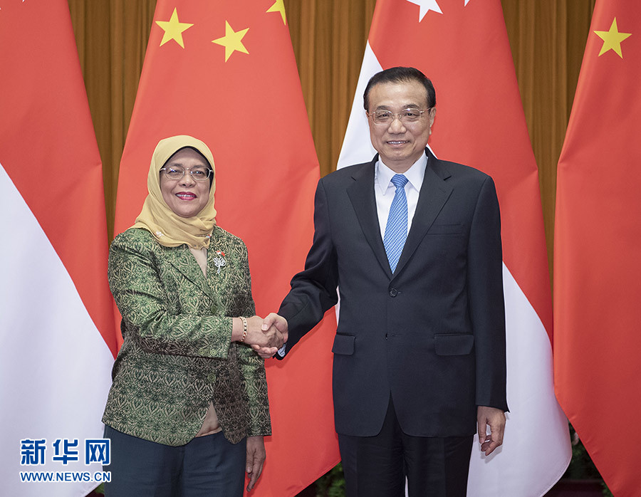 李克強(qiáng)表示,中國和新加坡隔海相望,兩國在相互尊重、平等合作、互利共贏基礎(chǔ)上發(fā)展了良好關(guān)系,給兩國人民帶來福祉。新加坡是個(gè)多元文明構(gòu)成的社會(huì)。昨天,習(xí)近平主席同總統(tǒng)女士舉行了富有成果的會(huì)見,展望了兩國關(guān)系廣闊前景。中方愿同新方發(fā)揮各自優(yōu)勢,保持良好合作勢頭,繼續(xù)挖掘合作潛力,將“一帶一路”倡議同新方發(fā)展戰(zhàn)略相銜接,推動(dòng)中國西部地區(qū)和新加坡對接,扎實(shí)推進(jìn)“陸海新通道”、第三方市場、智慧城市、技能培訓(xùn)等領(lǐng)域合作。希望雙方推進(jìn)文明和文化的交流,密切人員往來,夯實(shí)兩國友好的民意基礎(chǔ),促進(jìn)雙邊關(guān)系繼續(xù)向前發(fā)展。中方愿同新方共同應(yīng)對全球性挑戰(zhàn),為世界和地區(qū)的和平穩(wěn)定發(fā)展作出貢獻(xiàn)。