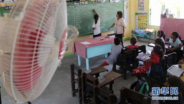 菲律賓中小學6月開始新學年。坐在明亮涼爽的教室中,巴利瓦特小學的孩子們十分興奮?!艾F(xiàn)在有了電燈、電風扇,孩子們終于不用渾身濕漉漉地趴在書桌上費力讀書了?!苯處煱@荨たㄍ呒铀拐f。