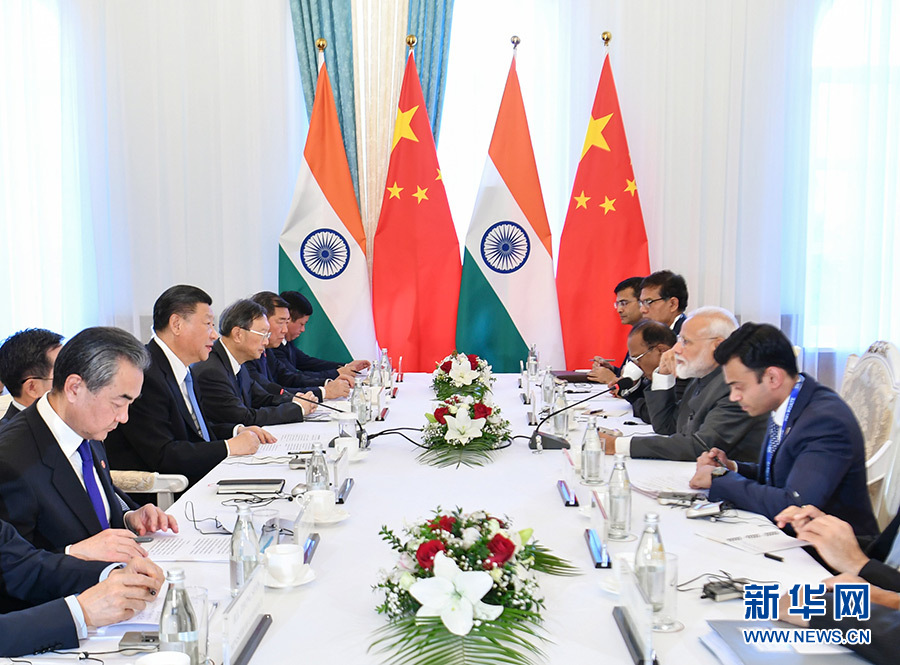 習(xí)近平強調(diào),雙方要堅持中印互為發(fā)展機遇、互不構(gòu)成威脅的基本判斷,堅持深化互信、聚焦合作、妥處分歧,使中印關(guān)系成為促進兩國發(fā)展的更大正資產(chǎn)、正能量。要不斷拓展合作渠道,開展投資、產(chǎn)能、旅游等方面合作,做大共同利益蛋糕,共同推動區(qū)域互聯(lián)互通,包括孟中印緬經(jīng)濟走廊建設(shè),更好實現(xiàn)合作發(fā)展、共同發(fā)展。要用好邊界問題特別代表會晤等機制,加強信任措施建設(shè),保持兩國邊境地區(qū)的穩(wěn)定。作為發(fā)展中國家和新興市場經(jīng)濟體的重要代表,中印雙方要共同維護自由貿(mào)易和多邊主義,維護發(fā)展中國家正當(dāng)發(fā)展權(quán)利。