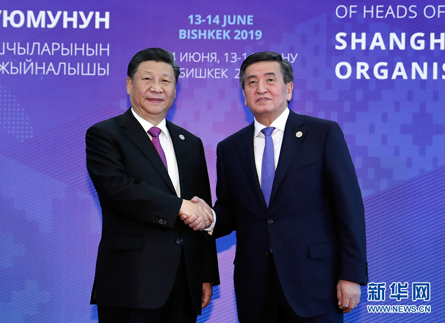 6月14日,國家主席習(xí)近平在吉爾吉斯斯坦首都比什凱克出席上海合作組織成員國元首理事會第十九次會議并發(fā)表重要講話。這是習(xí)近平抵達(dá)阿拉爾恰國賓館會議中心大廳,受到吉爾吉斯斯坦總統(tǒng)熱恩別科夫熱情迎接。 新華社記者 丁林 攝