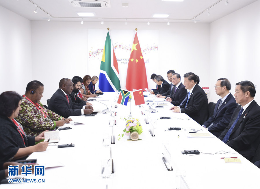 6月28日,國家主席習(xí)近平在大阪會(huì)見南非總統(tǒng)拉馬福薩。 新華社記者 龐興雷 攝