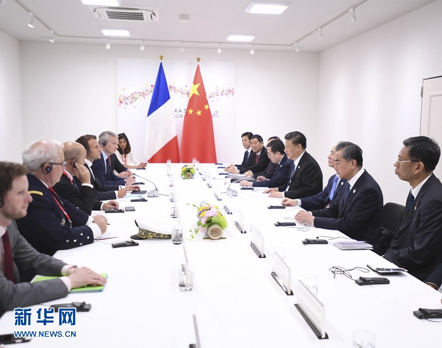 6月29日,國家主席習(xí)近平在大阪會見法國總統(tǒng)馬克龍。 新華社記者 燕雁 攝