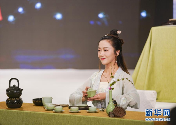 這是7月3日在越南首都河內(nèi)拍攝的推介會(huì)上的茶藝表演。新華社發(fā)(法鑫 攝)