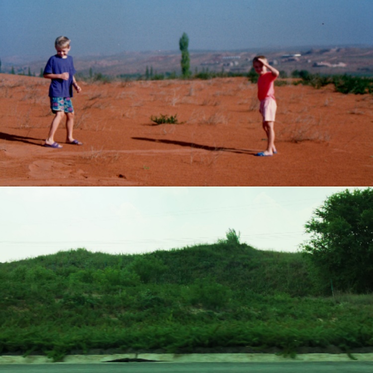 上圖:1994年拍攝的中國西部沙漠;下圖:2019年拍攝的同一地點(diǎn)。(潘維廉供圖)