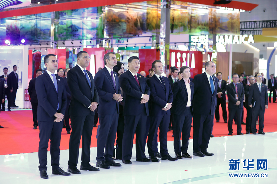 新華社上海11月5日電(記者李忠發(fā)、周蕊)國家主席習(xí)近平5日在上海出席第二屆中國國際進口博覽會開幕式后,同與會外國領(lǐng)導(dǎo)人共同巡館。
