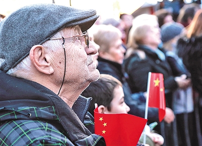 當?shù)孛癖娫谝粓鲋黝}為“塞爾維亞人民永遠和中國兄弟在一起”的音樂會上,手持中國國旗表示對中國的支持。新華社發(fā)