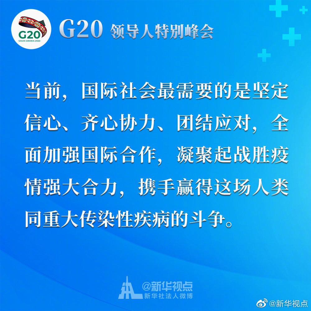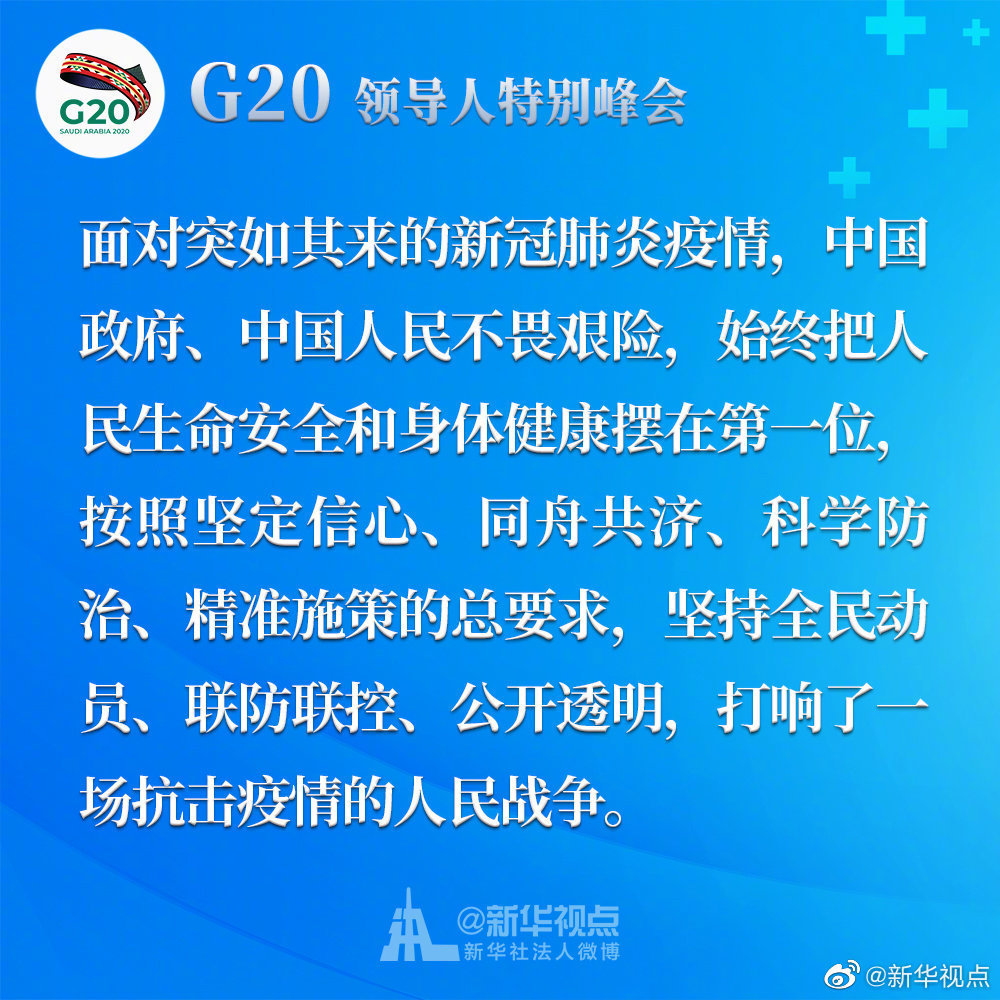 習(xí)近平在二十國集團領(lǐng)導(dǎo)人應(yīng)對新冠肺炎特別峰會上重要講話金句