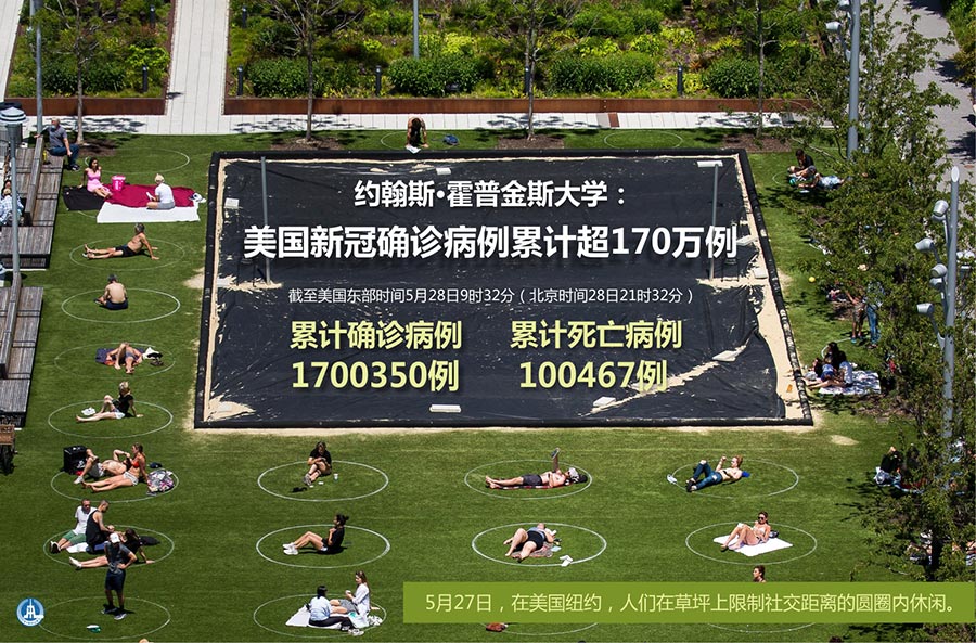 新華社紐約5月28日電 美國(guó)約翰斯·霍普金斯大學(xué)28日發(fā)布的新冠疫情最新統(tǒng)計(jì)數(shù)據(jù)顯示,截至美國(guó)東部時(shí)間28日9時(shí)32分(北京時(shí)間28日21時(shí)32分),美國(guó)累計(jì)確診病例達(dá)1700350例,累計(jì)死亡病例達(dá)100467例。