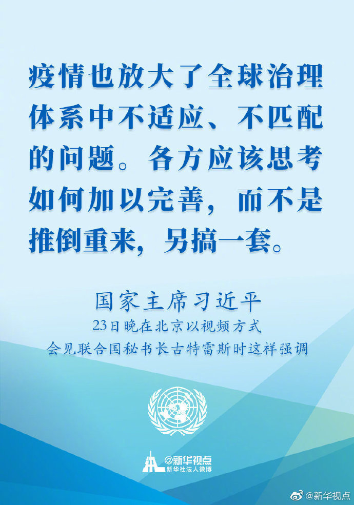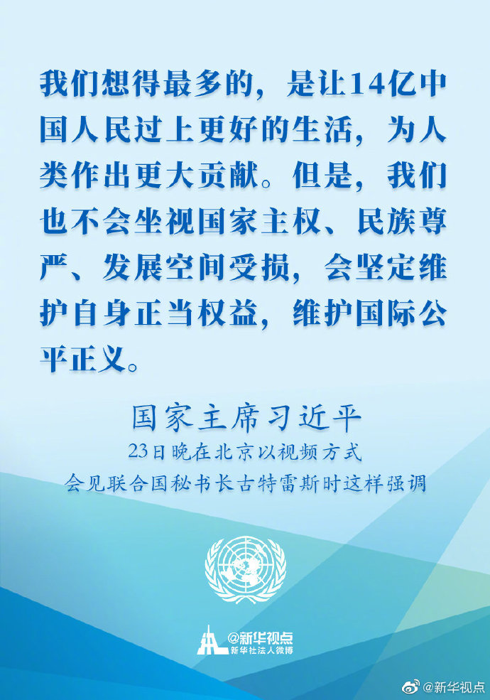 國(guó)家主席習(xí)近平23日晚在北京以視頻方式會(huì)見聯(lián)合國(guó)秘書長(zhǎng)古特雷斯時(shí)講話的金句