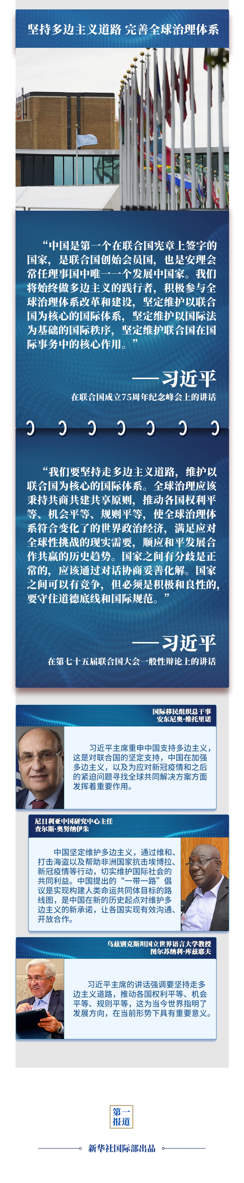 在聯(lián)合國(guó)成立75周年之際,習(xí)主席通過(guò)視頻方式,在聯(lián)合國(guó)這一多邊外交舞臺(tái)闡述關(guān)于國(guó)際秩序和人類前途命運(yùn)的中國(guó)主張,為國(guó)際社會(huì)應(yīng)對(duì)全球性挑戰(zhàn)、推動(dòng)共同發(fā)展指明方向,為世界各國(guó)攜手構(gòu)建人類命運(yùn)共同體、共創(chuàng)更加美好的未來(lái)注入信心和動(dòng)力——