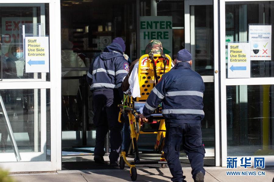 12月3日,在美國紐約,工作人員運送一名患者。新華社發(fā)(郭克 攝)
