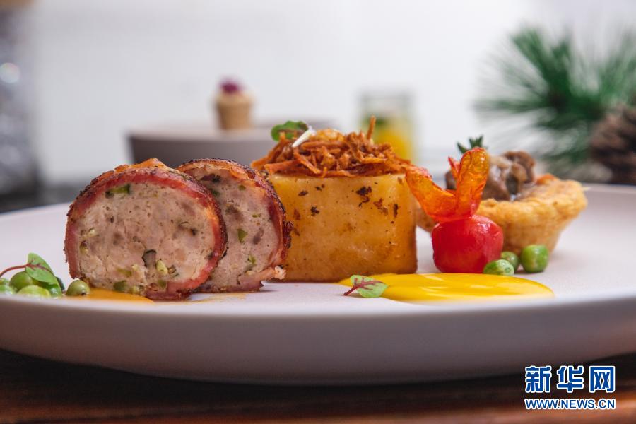 11月23日,泰國曼谷葡萄牙人后裔社區(qū)一家小私房菜館出品的菜品被擺放在天堂酒店的餐桌上。新華社發(fā)(天堂酒店供圖)