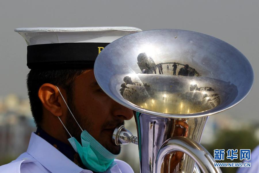 3月23日,樂(lè)手在位于巴基斯坦卡拉奇的國(guó)父真納墓參加“巴基斯坦日”紀(jì)念活動(dòng)。