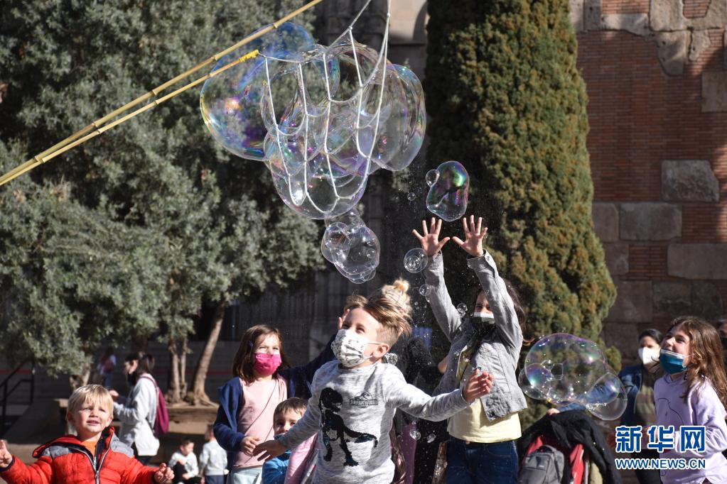 3月30日,小朋友們?cè)谖靼嘌腊腿_那主教堂廣場(chǎng)玩耍。