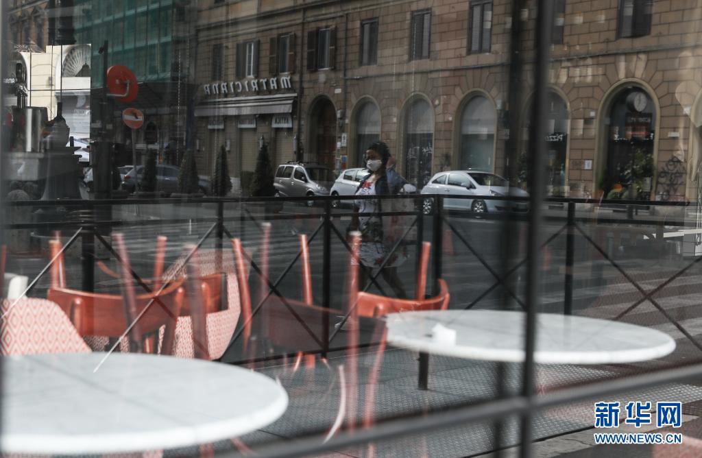 4月3日,一名女子走過意大利羅馬一家關(guān)閉的餐館。