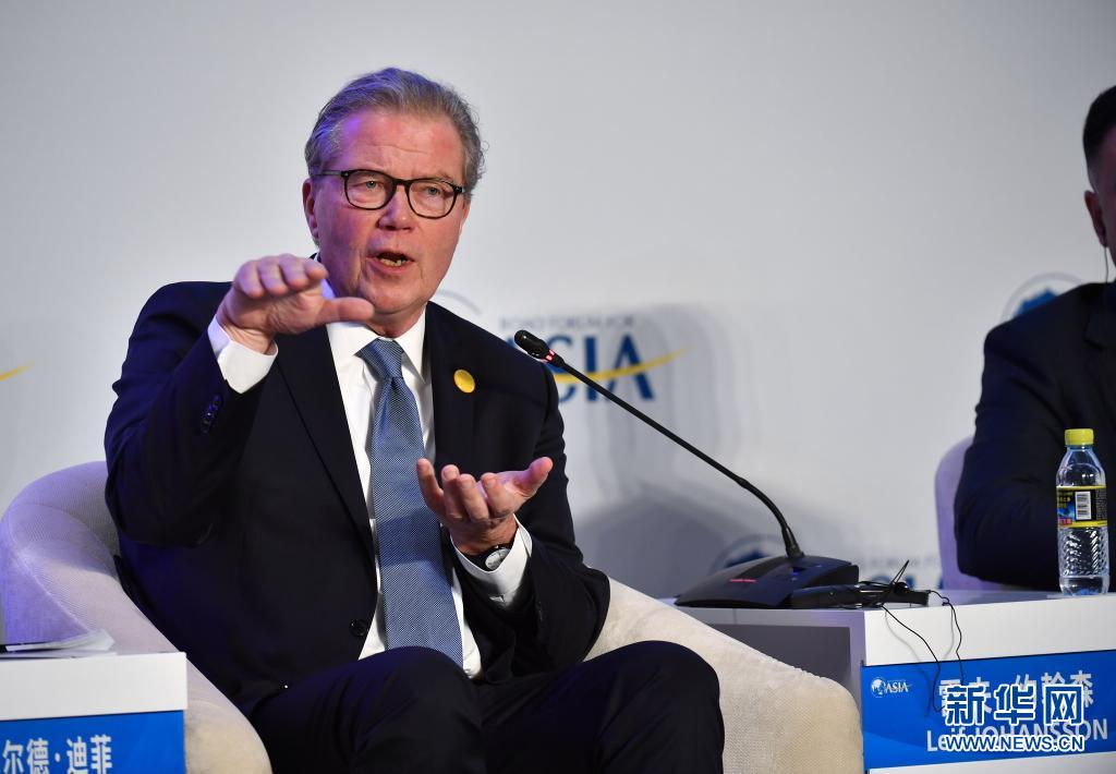 阿斯利康公司董事長雷夫·約翰森在博鰲亞洲論壇2019年年會“‘AI+’時代來了嗎?”分論壇上發(fā)言(2019年3月27日攝)。新華社記者 郭程 攝