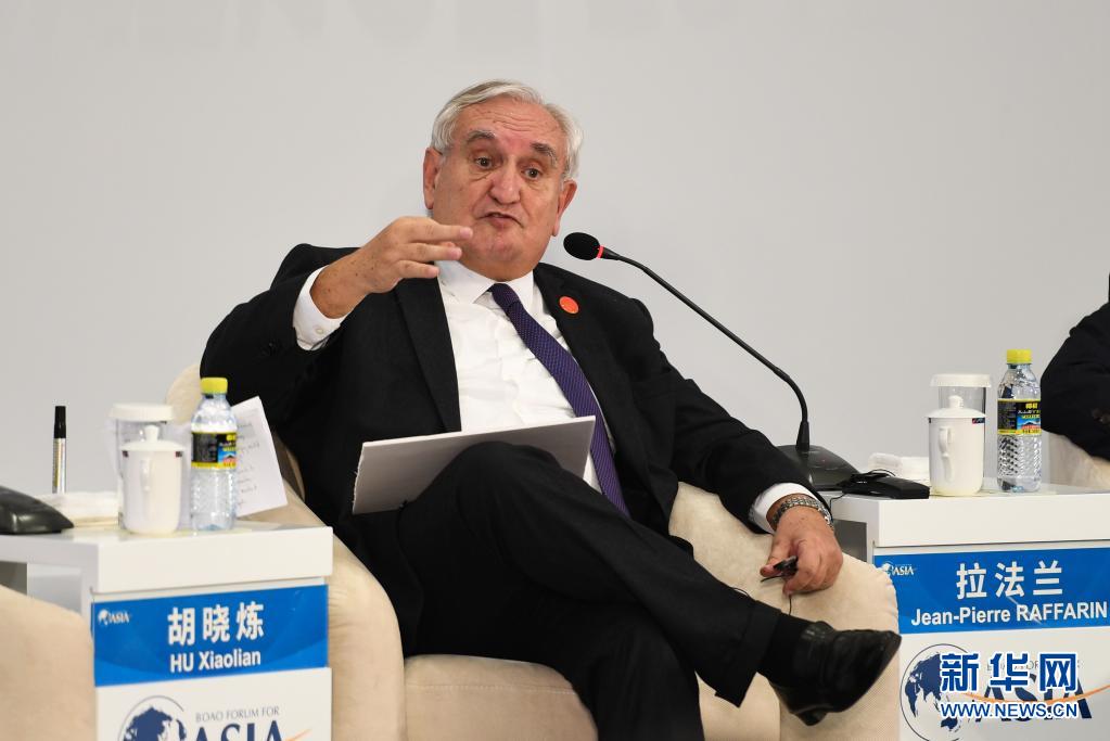 法國前總理拉法蘭在博鰲亞洲論壇2018年年會“改革開放40年:中國與世界”電視辯論上發(fā)言(2018年4月10日攝)。新華社記者 楊冠宇 攝