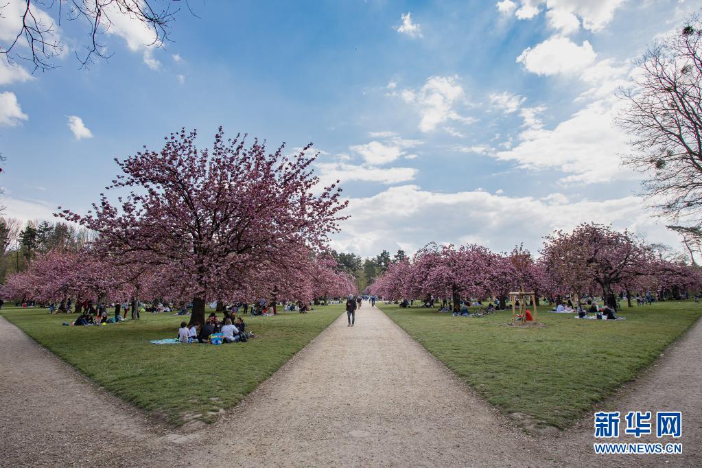 4月20日,人們?cè)诜▏?guó)巴黎近郊的國(guó)璽公園欣賞櫻花。