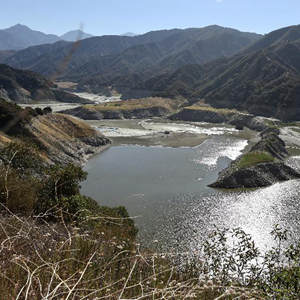 這是6月24日拍攝的美國加利福尼亞州洛杉磯縣阿祖薩市附近的圣加布里埃爾水庫。