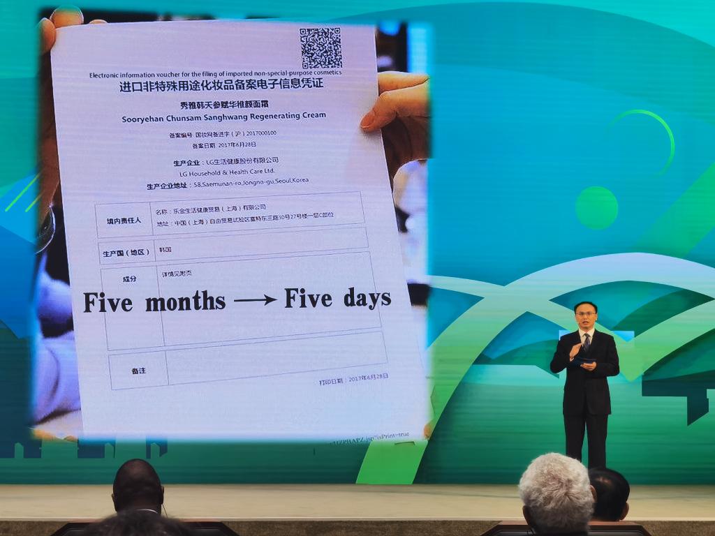 2021年6月16日,在“中國(guó)共產(chǎn)黨的故事——習(xí)近平新時(shí)代中國(guó)特色社會(huì)主義思想在上海的實(shí)踐”特別對(duì)話(huà)會(huì)上,中國(guó)(上海)自由貿(mào)易試驗(yàn)區(qū)管委會(huì)政策研究局副局長(zhǎng)鄭海鰲進(jìn)行講述。 新華社記者 吳宇 攝