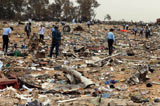 營救人員對墜機(jī)現(xiàn)場進(jìn)行檢查